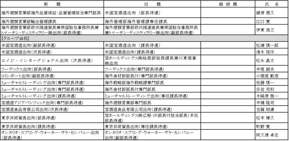 宝ホールディングス株式会社およびグループ会社では、2024年4月1日付で人事異動をおこないます。