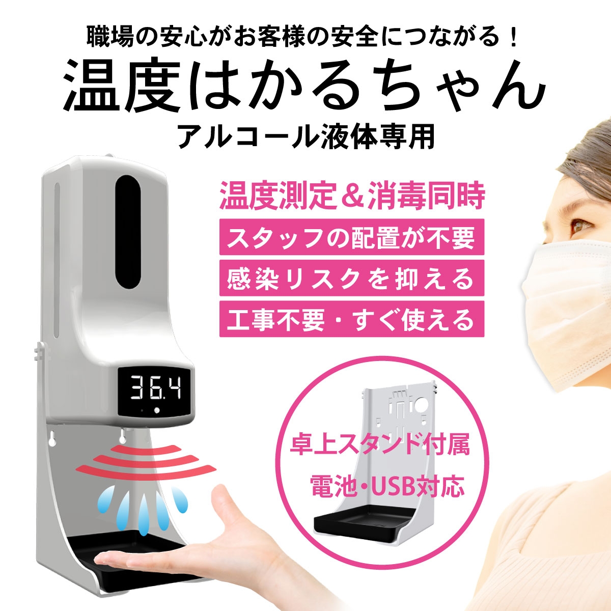 非接触式で温度測定&消毒を約1秒で同時にできる!「温度はかるちゃん 液体専用」発売
