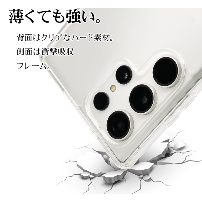 背面は傷に強いPC素材を採用し、側面は耐衝撃性のあるTPU素材を採用したクリアタイプのハイブリッドケースです。