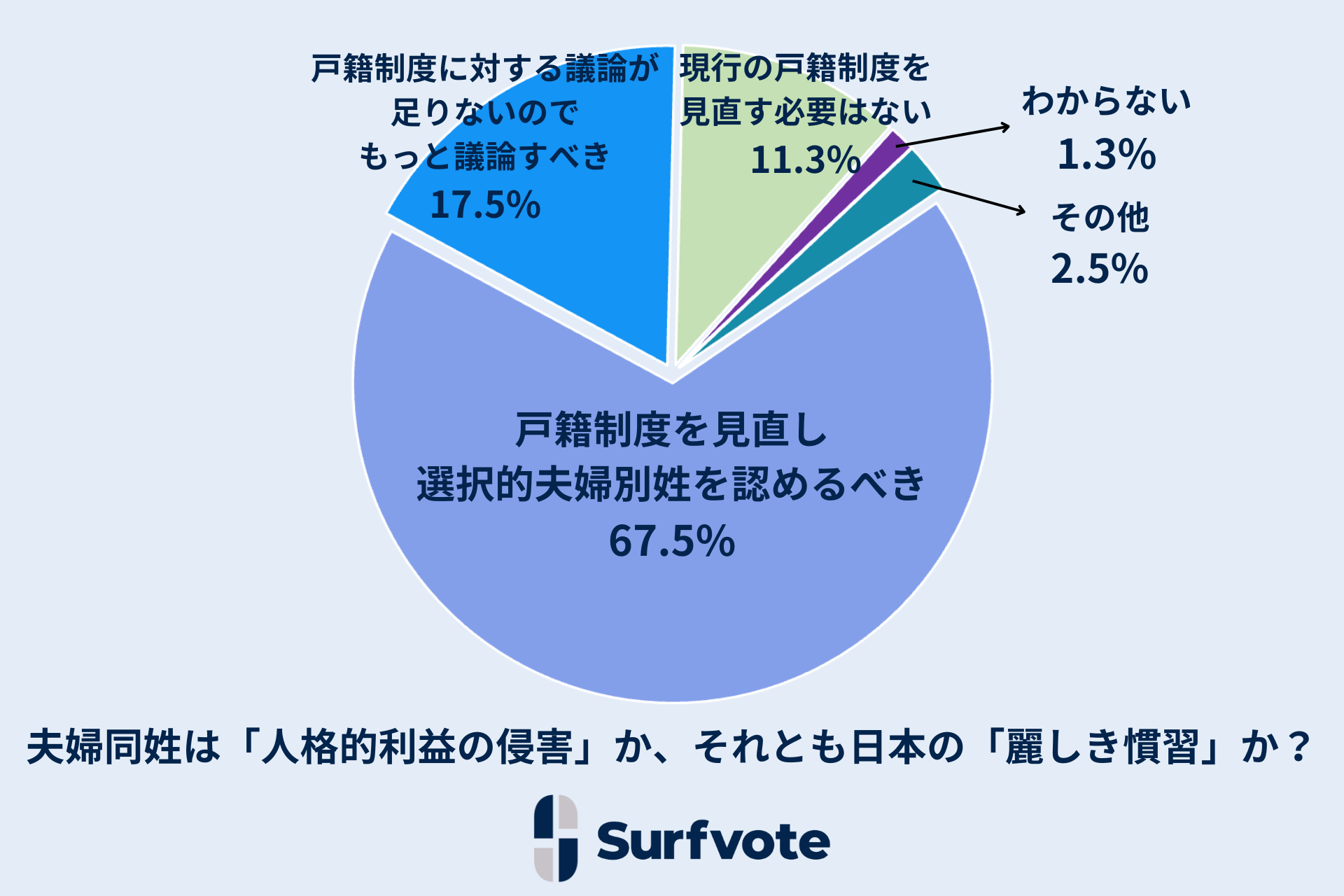 社会課題に参加できるSNS Surfvote結果速報『夫婦同姓は「人格的利益の侵害」か、それとも日本の「麗しき慣習」か?』