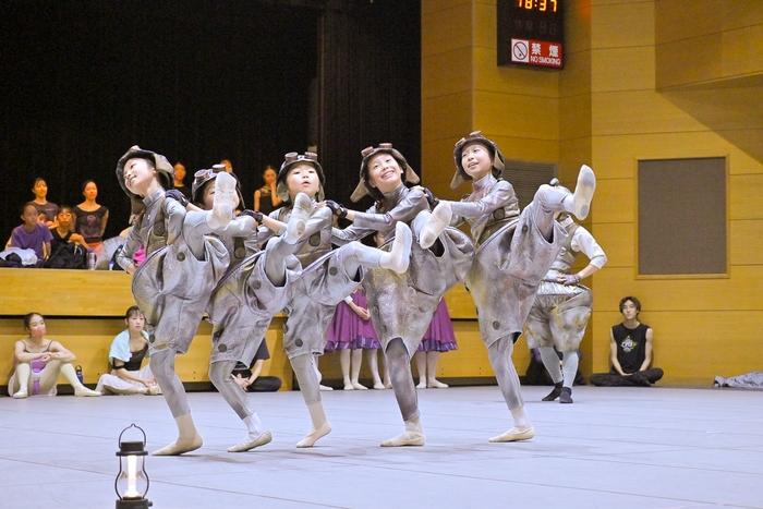 通し稽古ではプペル、ルビッチ、スコップとスコップが引き連れている子どもたちが衣装を着けて登場。小柄な竹田と大柄な風間の対比のバランスがとてもいい雰囲気を醸し、また音符に言葉が見えそうな宝満の振付に演技達者な2人のやり取りが重なり、言葉のないバレエが幾重にも雄弁に語りかけてくるのが印象的だ。八幡の踊りは非常に軽快。白石演じるレベッカの存在感は、宝満に「女帝」と言わしめるほどの圧倒的なオーラを放っており、ルビッチVSレベッカのやり取りは、見どころのひとつとなると思わせられる。煙に見立てた布がプペルを巻き込むシーンはトリッキーな味わいも感じさせるダイナミックさがあり、風間の「凄さ」が発揮されるプペルのソロは圧巻。非常に濃厚な、数々の見どころにあふれた舞台に仕上がることは間違いない。