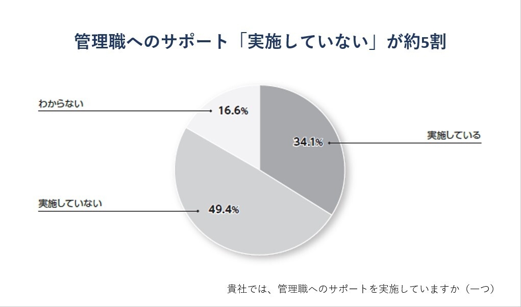 管理職に対してサポートを実施しているか聞いたところ、「実施していない」が49.4%で「実施している」の34.1%を15.3ポイント上回りました。