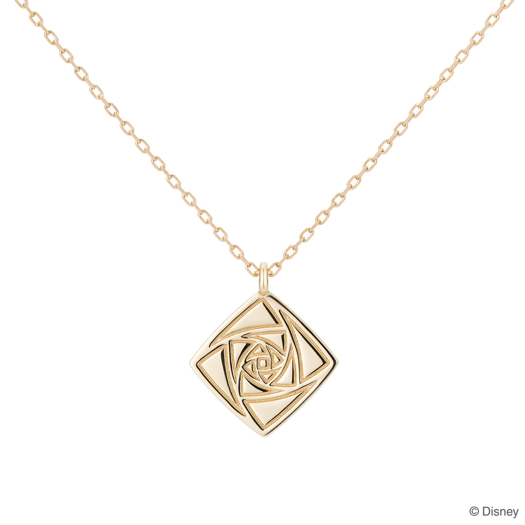 ゴールドのプレートにバラの花が開き、もう片面にはヒロイン「アーシャ」と「スター」のシルエットが刻印されたリバーシブルデザイン。願う事の大切さや行動する勇気をいつも胸に感じられそう。