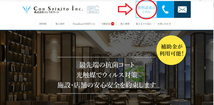 カンタン資料請求!資料のダウンロードボタンを追加。 次世代抗菌防臭コーティング「nanozone COAT ナノゾーンコート」