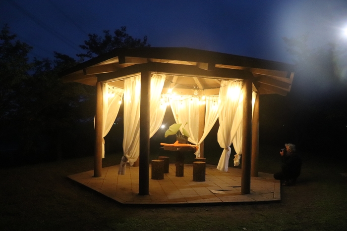 『東屋(あずまや)』 インスタレーション デコレーションとライトアップでオシャレになった夜の東屋は、絶好のフォトスポット