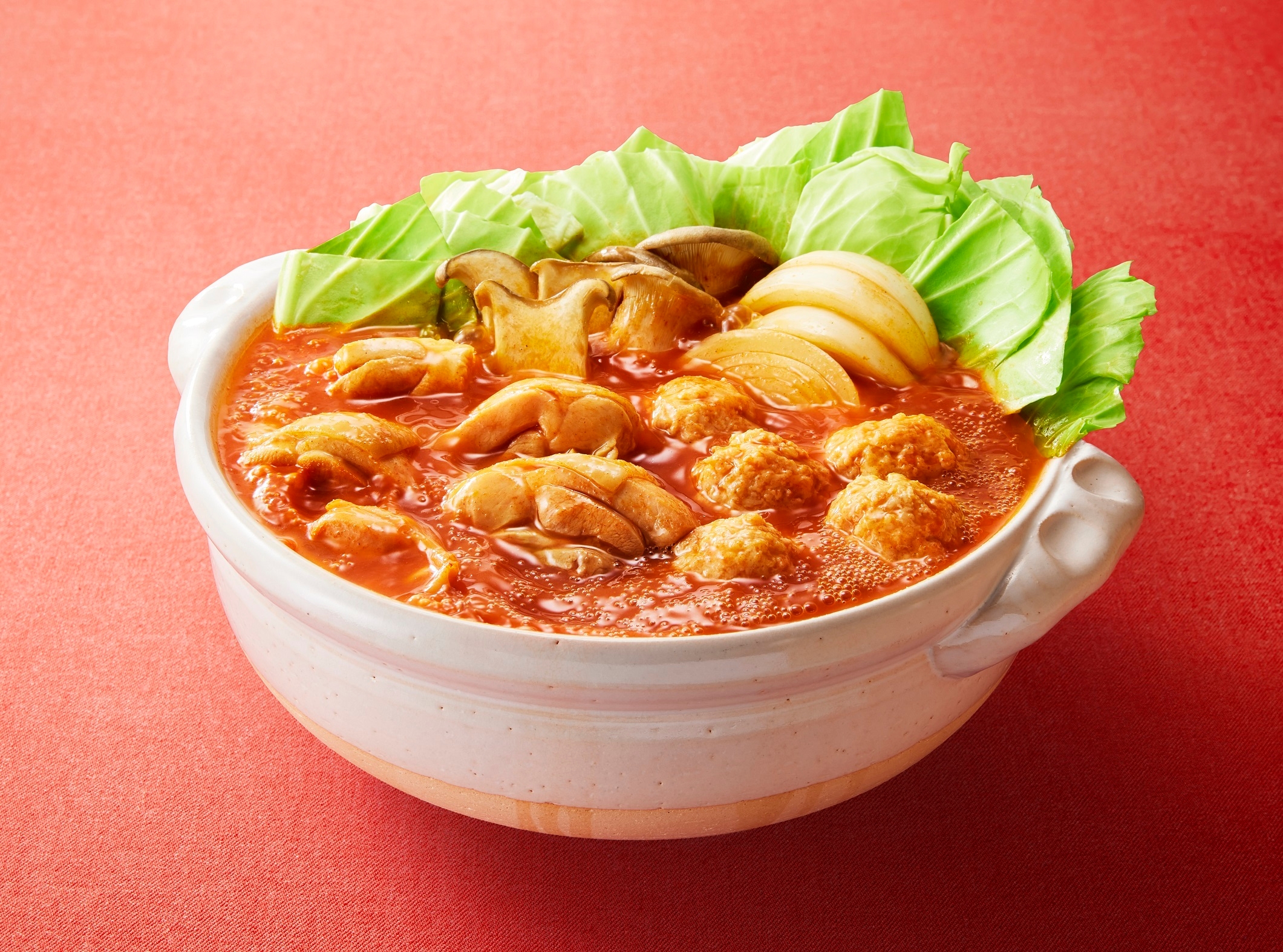 「トマト×辛味」がくせになる「チリトマト味」の食品は、2022年度の市場は2019年度比で267.4%と伸長傾向にあります。また、ラーメン系鍋スープは、2022年度の鍋つゆ市場において2019年度比で816.7%の飛躍的な数値を記録したカテゴリーです(ともに日経POS情報サービス)。そこで当社は、鍋つゆフレーバーのマンネリ感打破を目指し、鶏もも肉や鶏だんごと「トマトの旨み×ピリ辛味」をマッチさせた新フレーバーの洋風鍋スープを提案します。