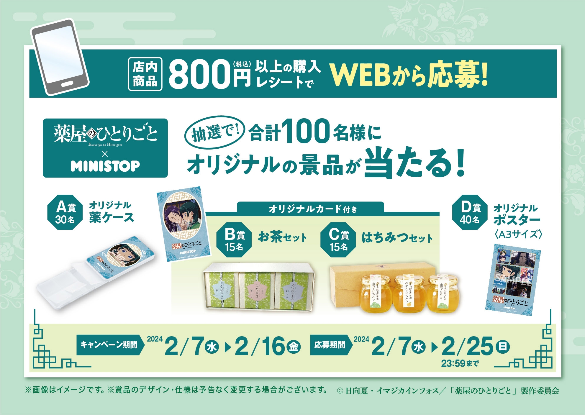 TVアニメ『薬屋のひとりごと』キャンペーン 2月7日(水)スタート! 人気商品がもらえるレシート大抽選会も同時開催! | NEWSCAST