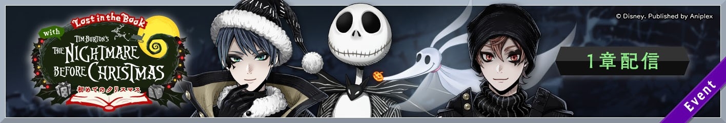 株式会社アニプレックス(本社:東京都千代田区 代表取締役岩上敦宏 以下アニプレックス)は、ウォルト・ディズニー・ジャパン株式会社(東京都港区)協力のもと制作のスマートフォンゲーム『ディズニー ツイステッドワンダーランド(Disney Twisted-Wonderland)』にて、期間限定イベント「Lost in the Book with Tim Burton's The Nightmare Before Christmas ~初めてのクリスマス~」の開催が決定いたしました。