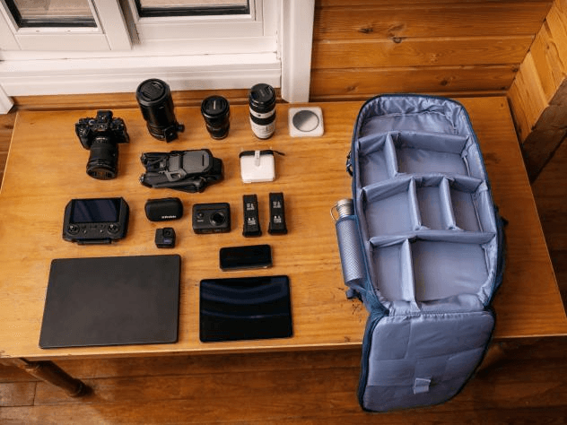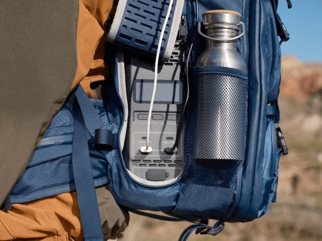 【Handsfree】は、リュックサックとポータブル電源を一体化したバックパック式ポータブル電源です。人間工学に基づき設計されたリュックサックには必要な機材を安全に効率よく収納できる間仕切りが用意されており、高機能カメラやドローンなどの撮影機材の収納はもちろん、防災グッズなども収納可能です。バックパック式にしたことで、移動時にも両手が自由に使えるので、行動範囲が大きく広がります。