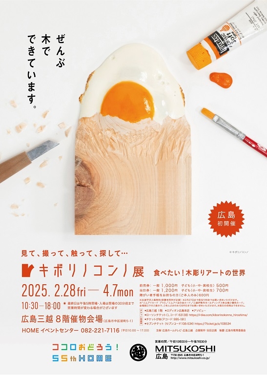 株式会社広島ホームテレビ(所在地:広島県広島市)が主催で2月28日(金)~4月7日(月)の期間、広島三越 8階催物会場で開催する「キボリノコンノ展」。