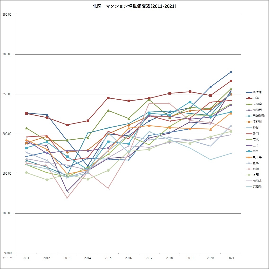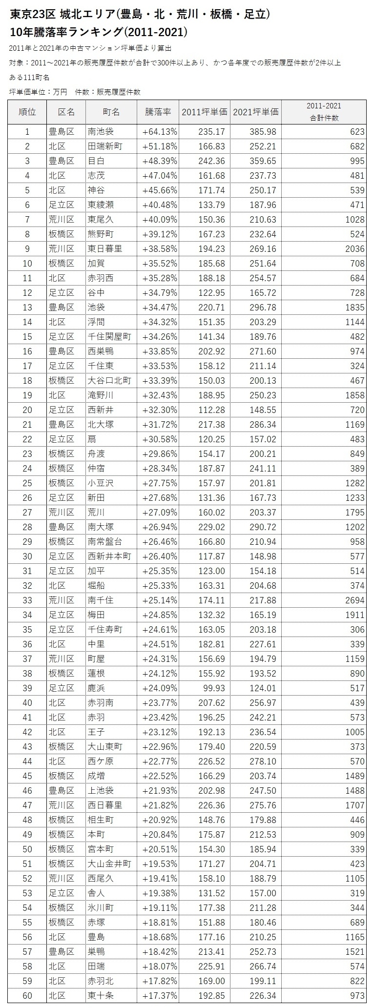 ■城北エリア 10年騰落率ランキング(2011-2021)