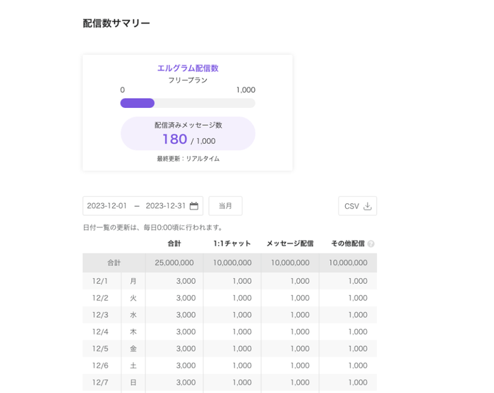 ・配信済みメッセージ数の合計