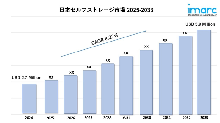 IMARCグループの最新の研究発表によると、「日本セルフストレージ市場レポート:ストレージユニットサイズ別(小型ストレージユニット、中型ストレージユニット、大型ストレージユニット)、最終用途別(個人、法人)、地域別 2025-2033」2024年、日本のセルフストレージ市場規模は270万米ドルに達した。今後、IMARCグループは、市場規模が2033年までに590万米ドルに達し、2025~2033年の予測期間中に8.27%のCAGRを示すと予測している。