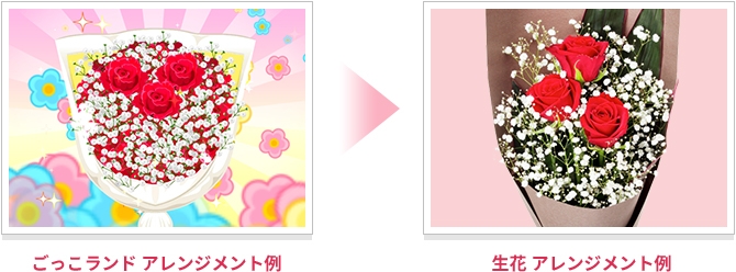 抽選で10名様にごっこランドで作ったデザインを本物のお花で再現してプレゼントします(3,000円相当)。