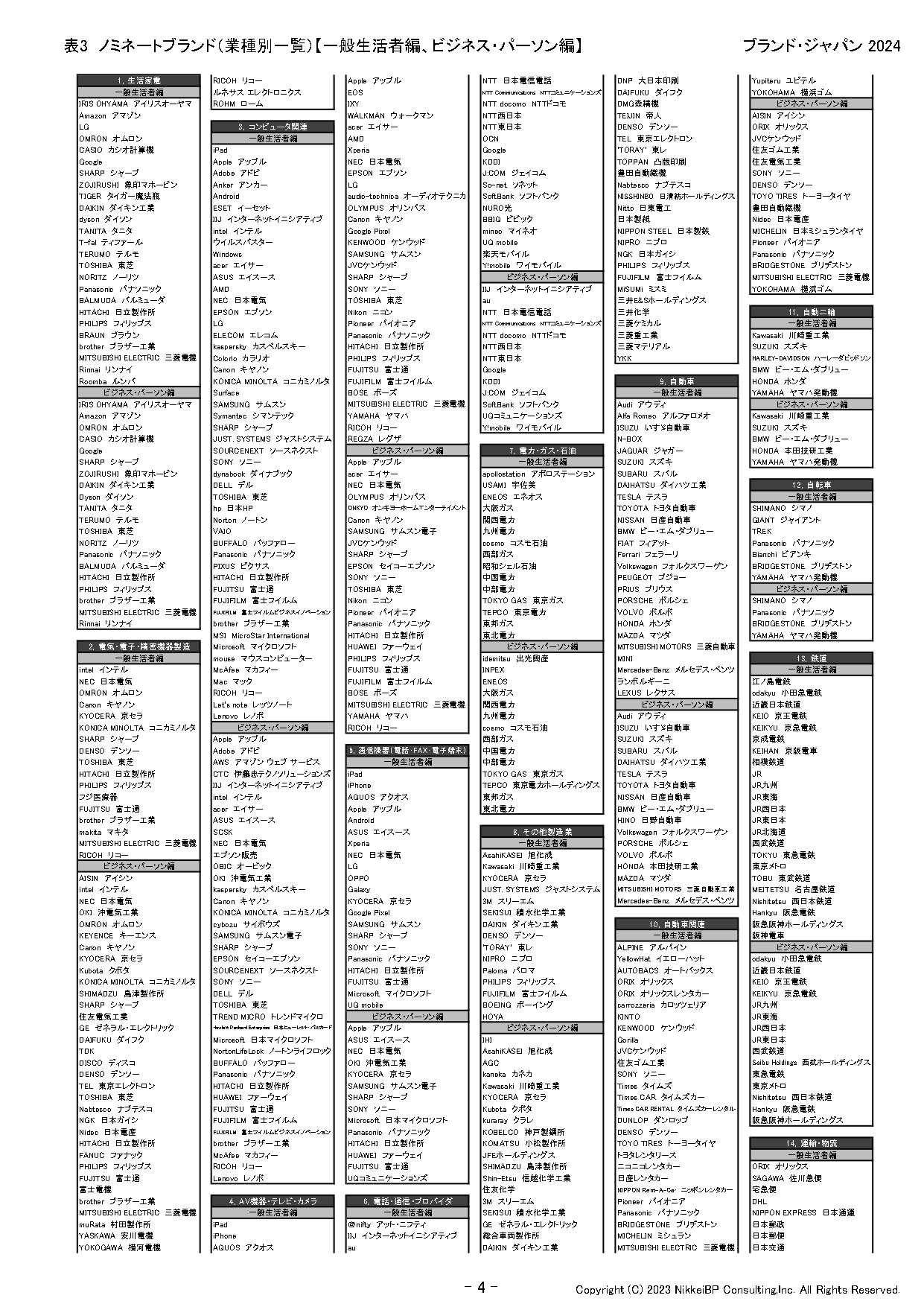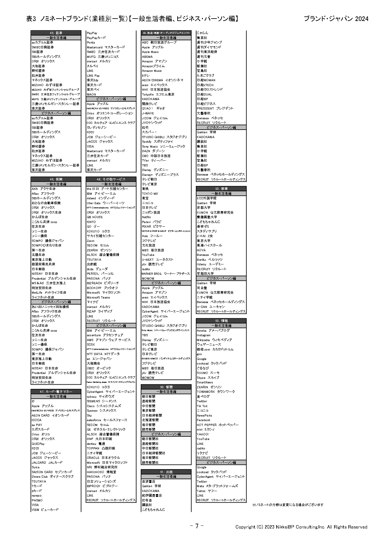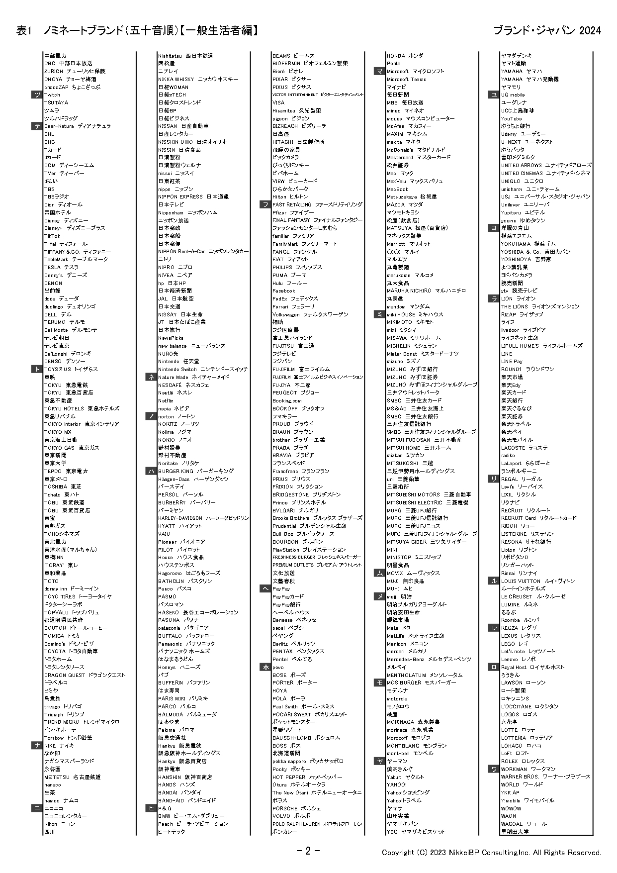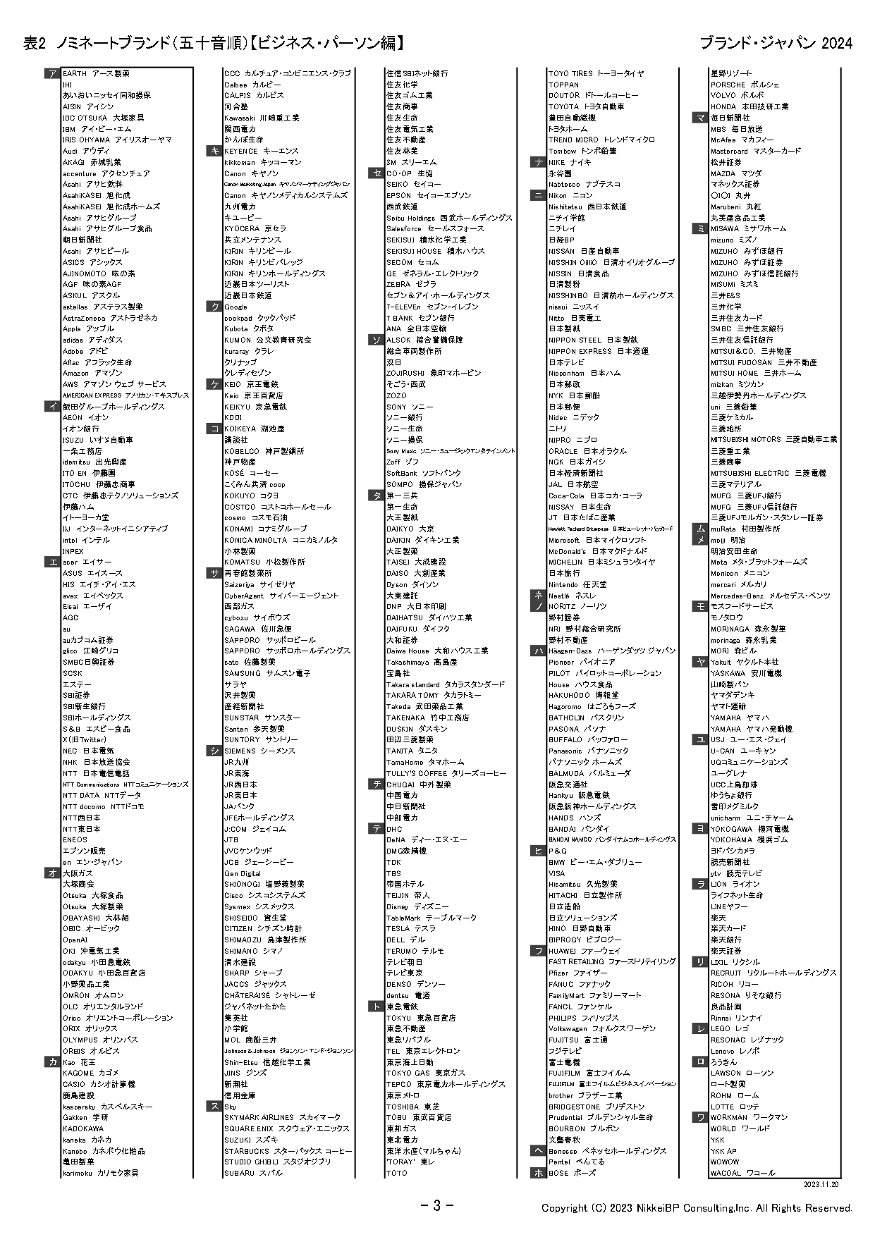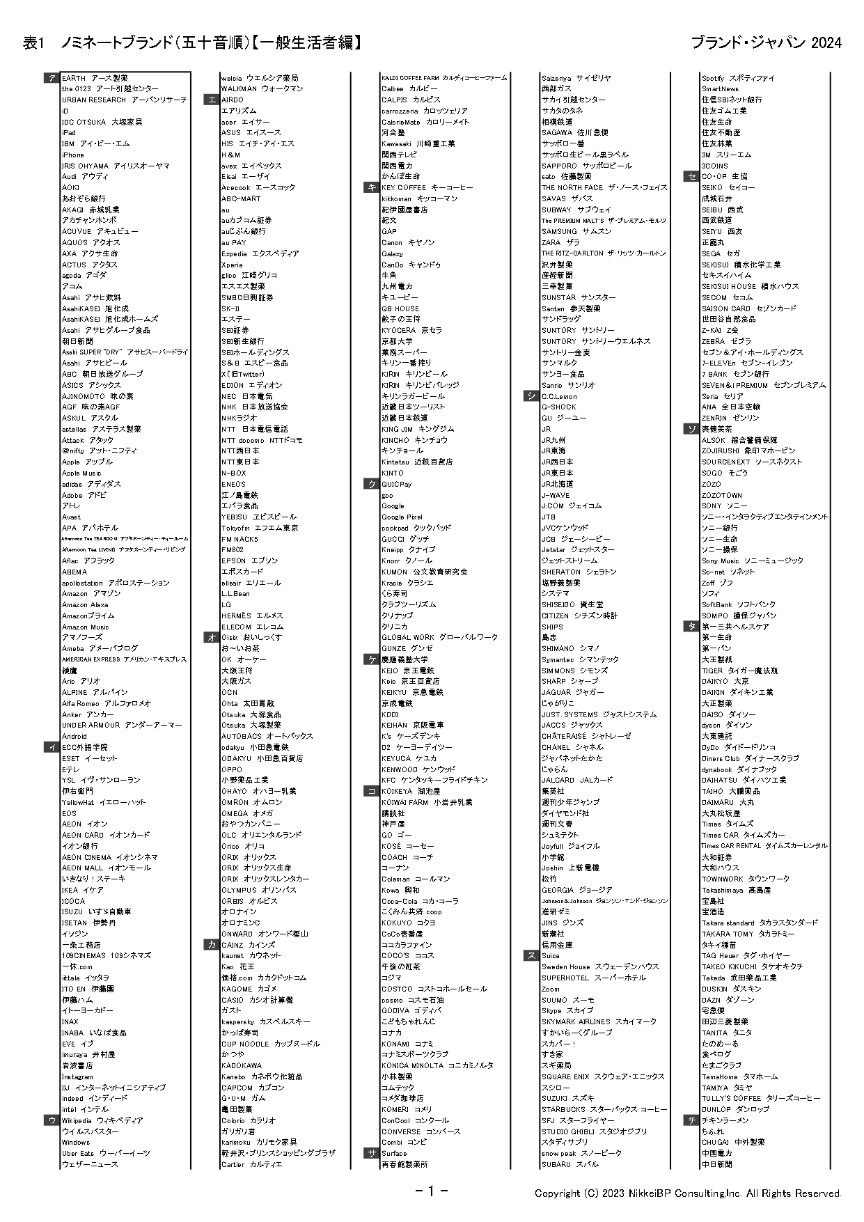株式会社日経BPコンサルティング(東京都港区)は、2024年3月22日に発行予定の「ブランド・ジャパン2024」で調査対象となる1,500ブランド(一般生活者編1,000ブランド、ビジネス・パーソン編500ブランド)を発表しました(表1~3)。