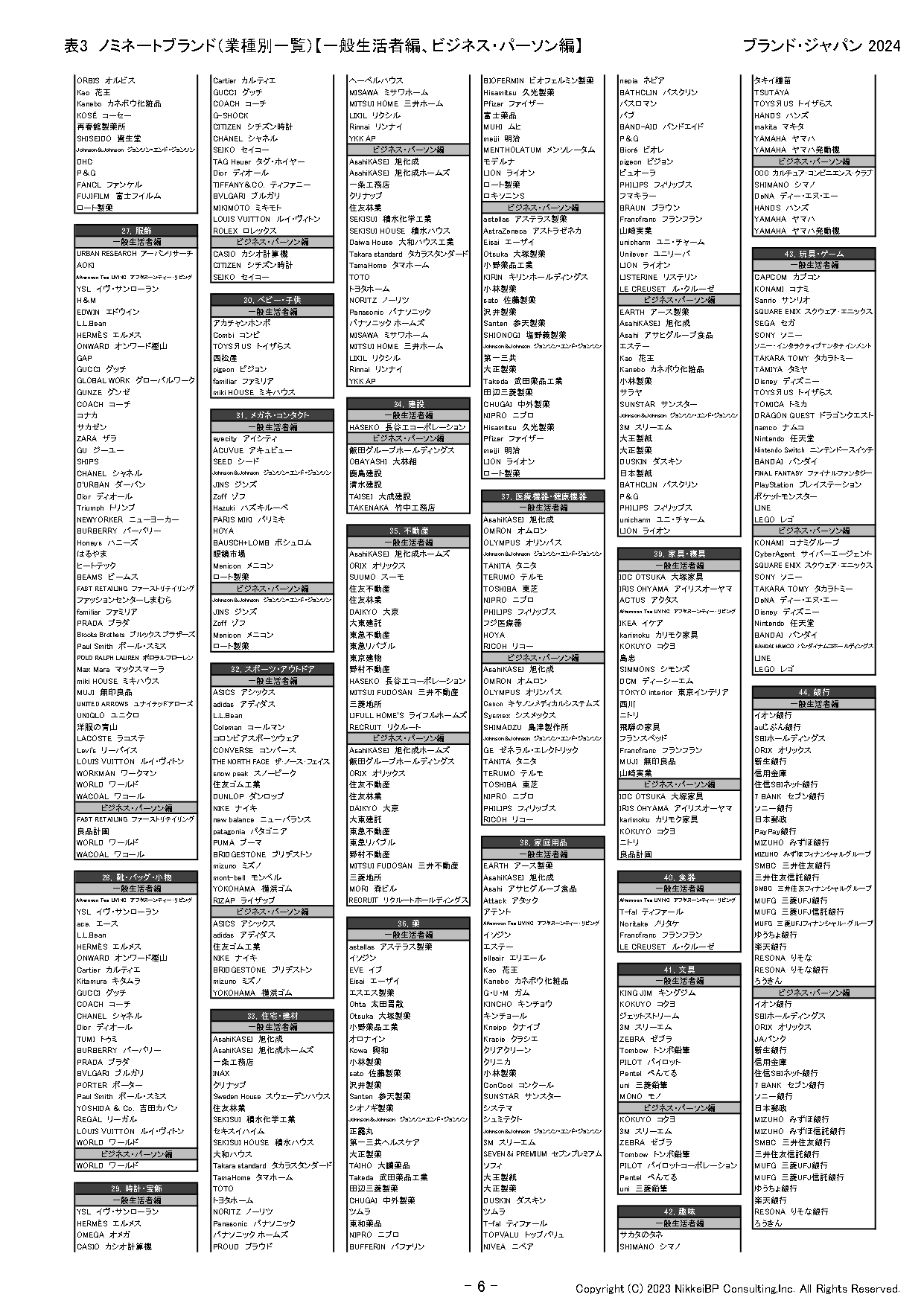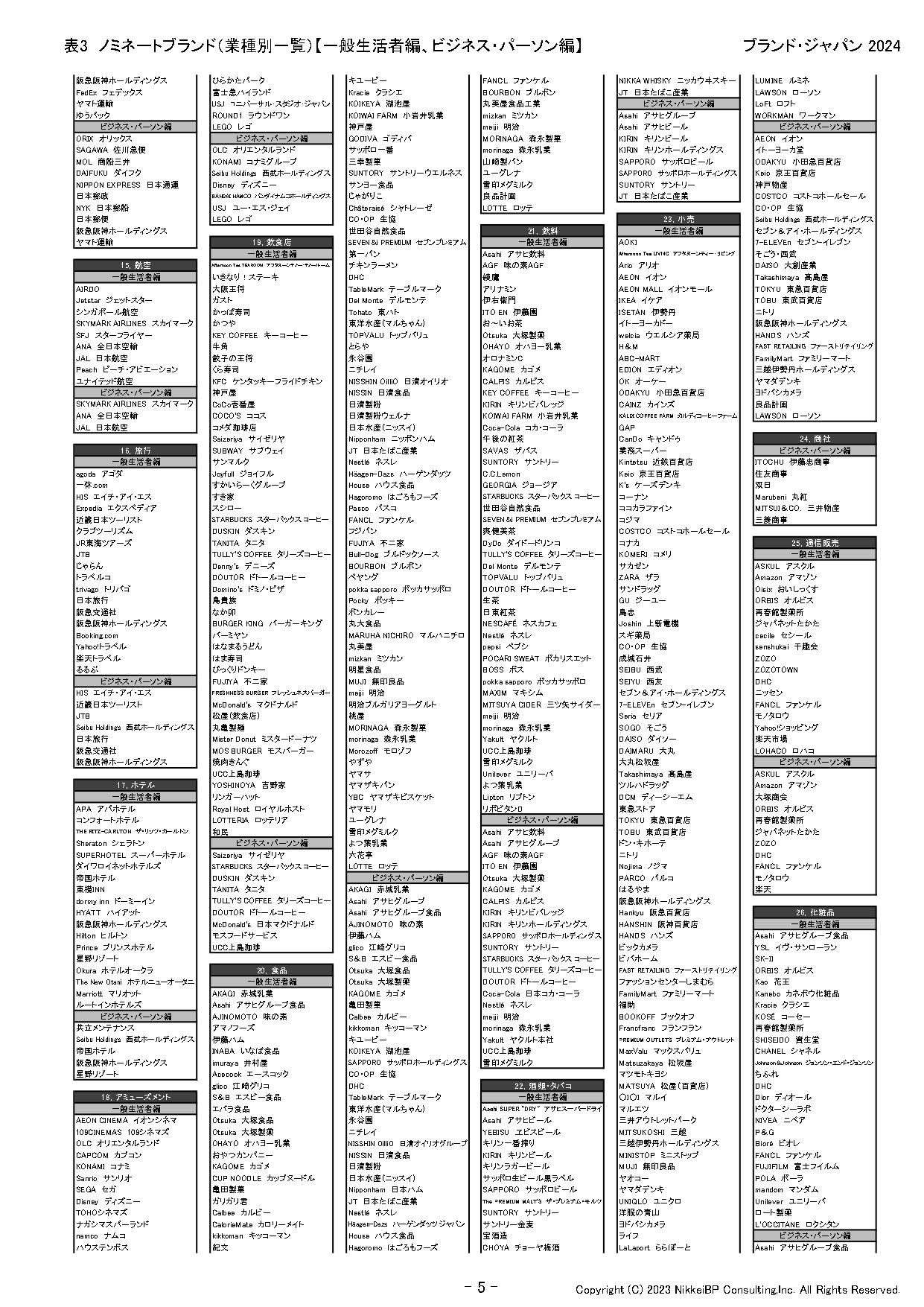 ※表3(別添):ノミネートブランド(業種別一覧)【一般生活者編、ビジネス・パーソン編】