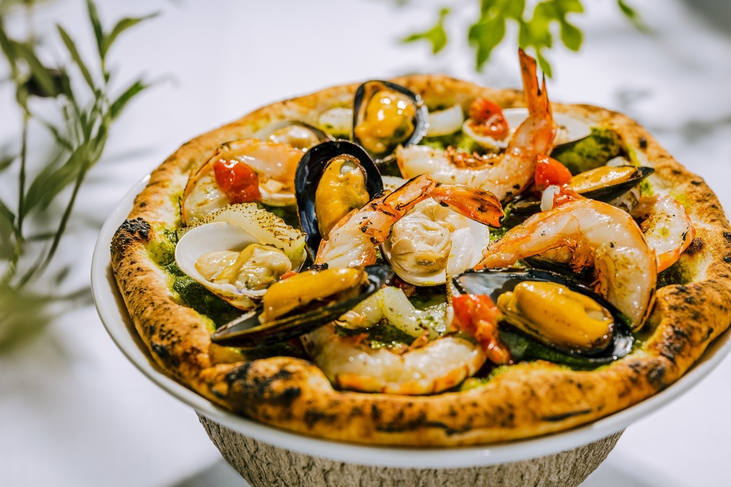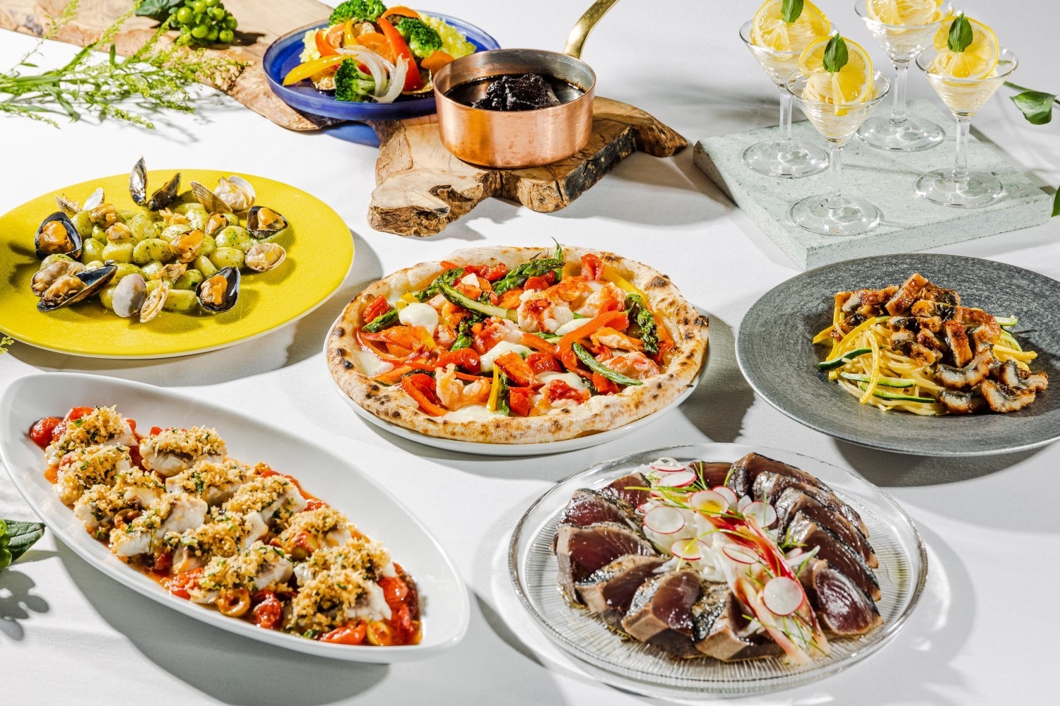 たっぷりの魚介とペストジェノベーゼがマッチする「ピッツァ ペスカトーレ」やシェフこだわりのスパイスが効いた「厳選豚のカラブリア風スパイスカレー」など、一度食べたらやみつきになる料理が勢揃い。
