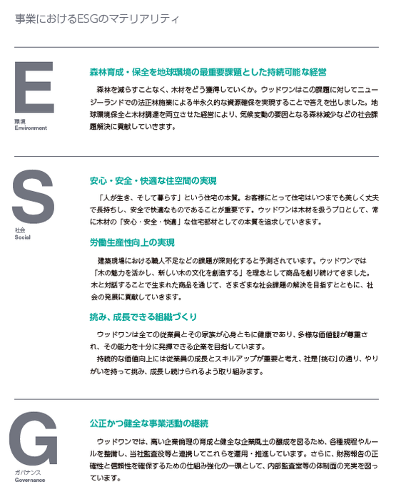 ダウンロードページ: https://www.woodone.co.jp/company/report/