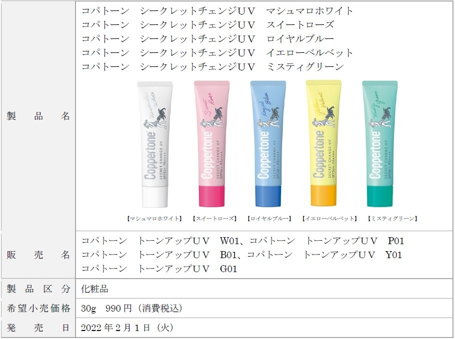 大正製薬株式会社[本社:東京都豊島区 社長:上原 茂]は、UVケアブランド「コパトーン」から、日焼け止めだけで※2素肌キレイをバレずに仕込むことをコンセプトとした「コパトーン シークレットチェンジUV」シリーズを2022年2月1日(火)に発売いたします。