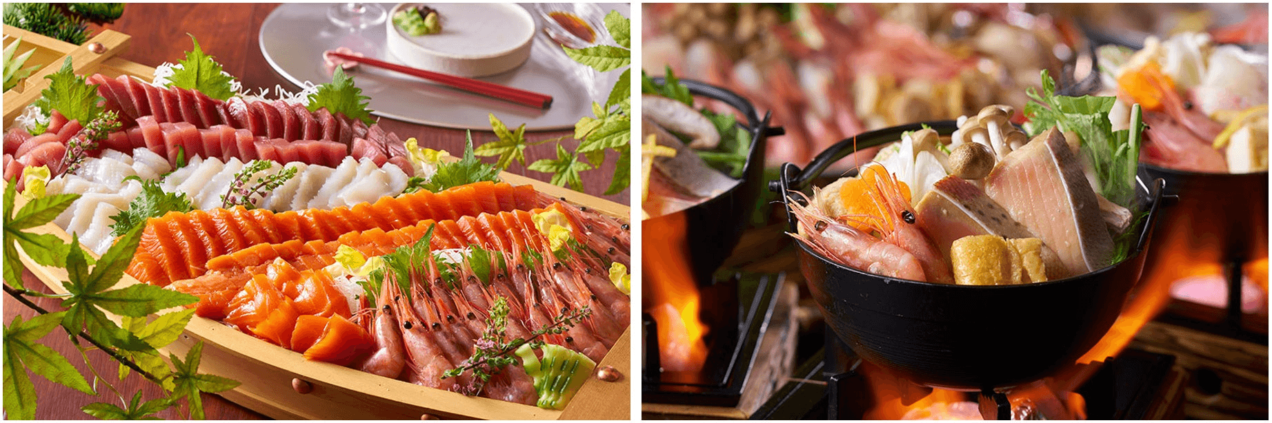 奇しくも、ホテルニュー塩原では九州をイメージした料理が、ホテル鬼怒川御苑では北海道を想起させる料理がずらりと並びます。