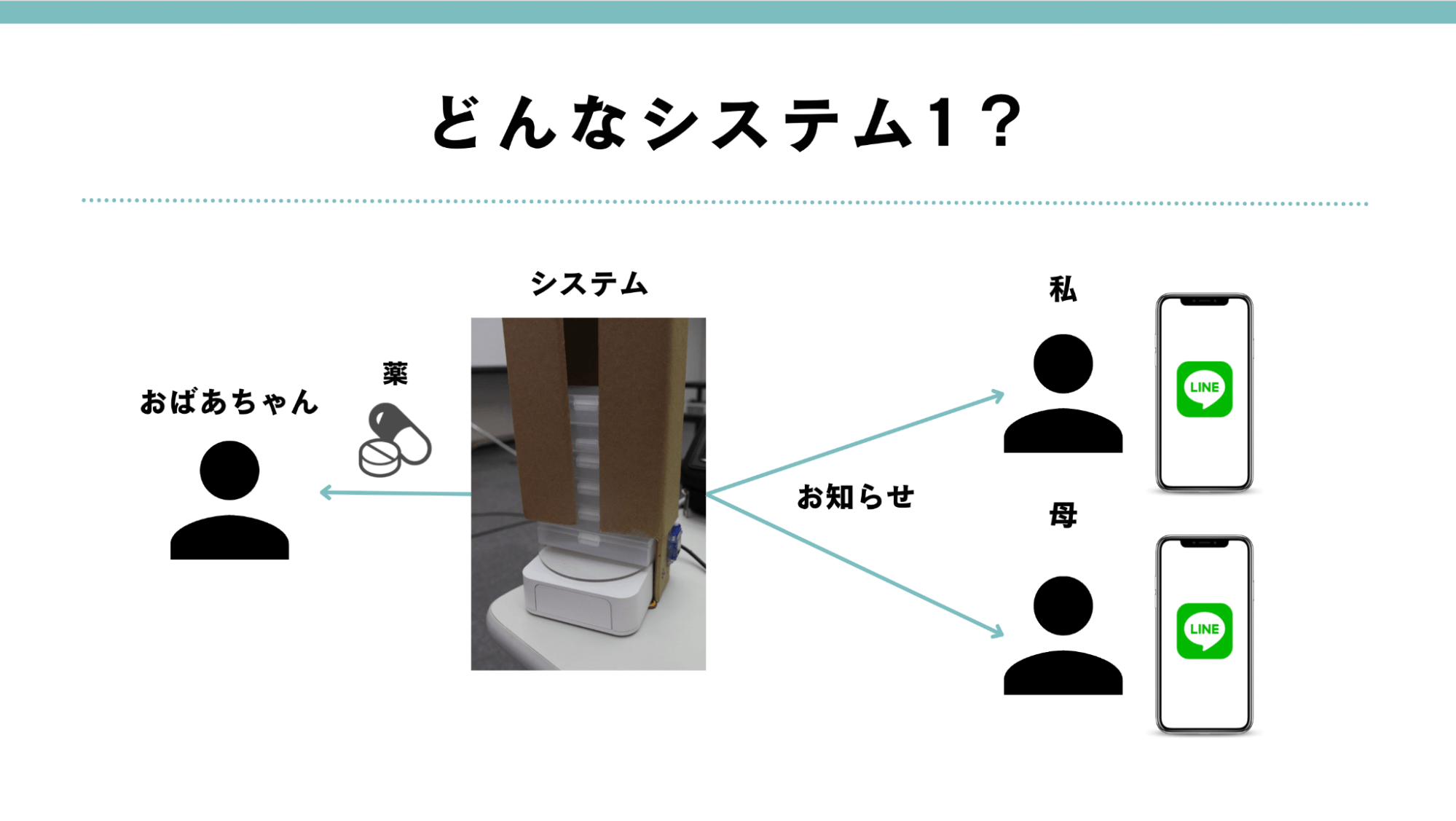 祖母が薬を飲み忘れてしまうという問題を解決すべく、自動で服用記録を取り、家族と共有できるお薬手帳アプリを実装。サーバー、クライアント、ハードの実装を全て一人で手がけた。アプリ使用中に画面を遮らないためにバックグラウンドで写真撮影ができるようにしたり、画像処理の負担を少なくする等の工夫を凝らした。