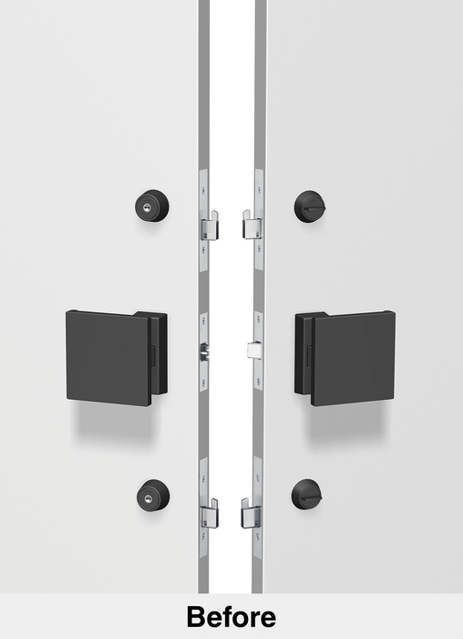 ・CP仕様ではない手動錠に本製品を取り付けることも可能です。ドアの追加加工・配線工事不要でハンズフリー認証スマートロックを設置することができます。