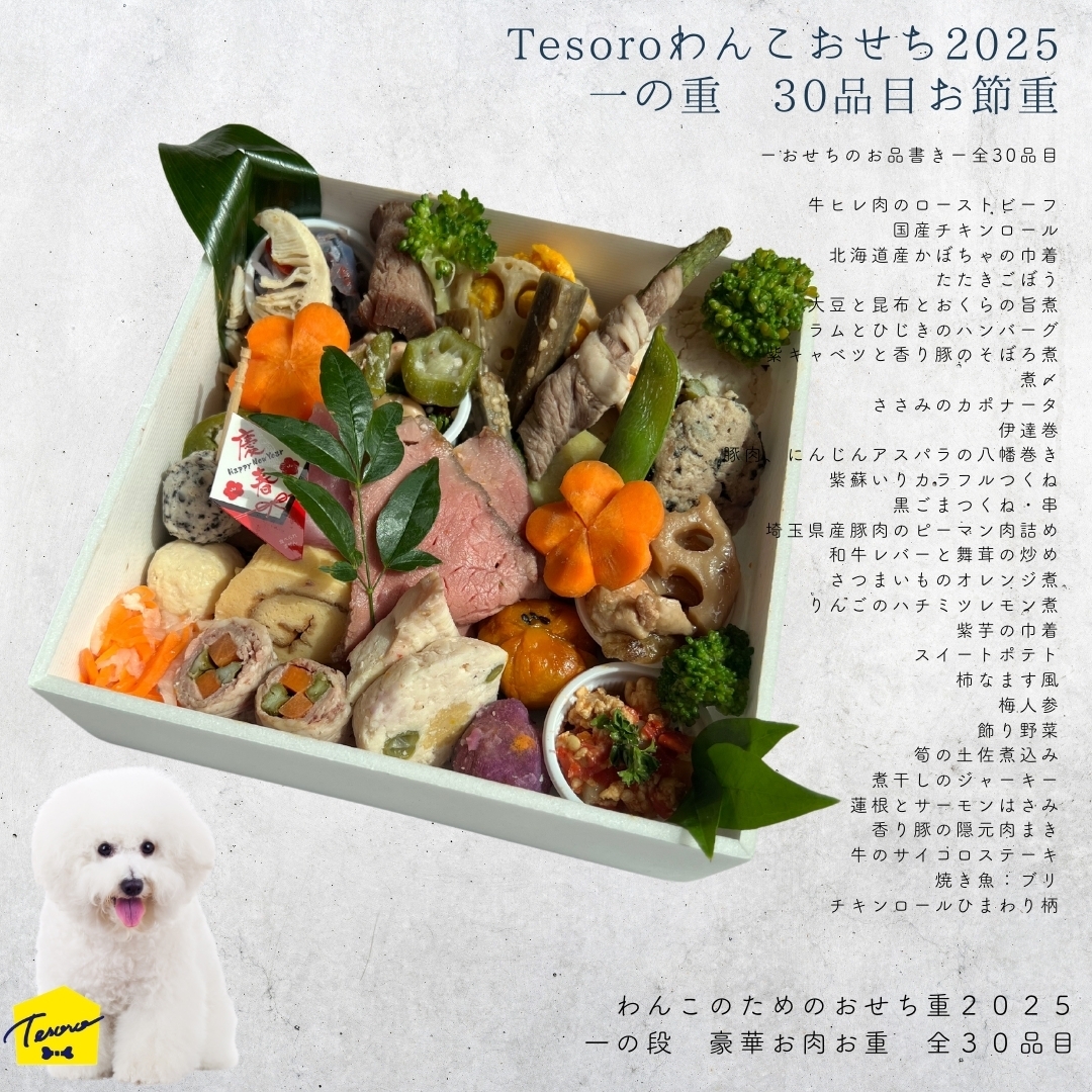 愛犬と過ごすお正月に新提案! 長沼精肉店の「犬用お節」で特別なひとときを ~創業75年の老舗精肉店が贈る新鮮素材100%のお節料理セット~