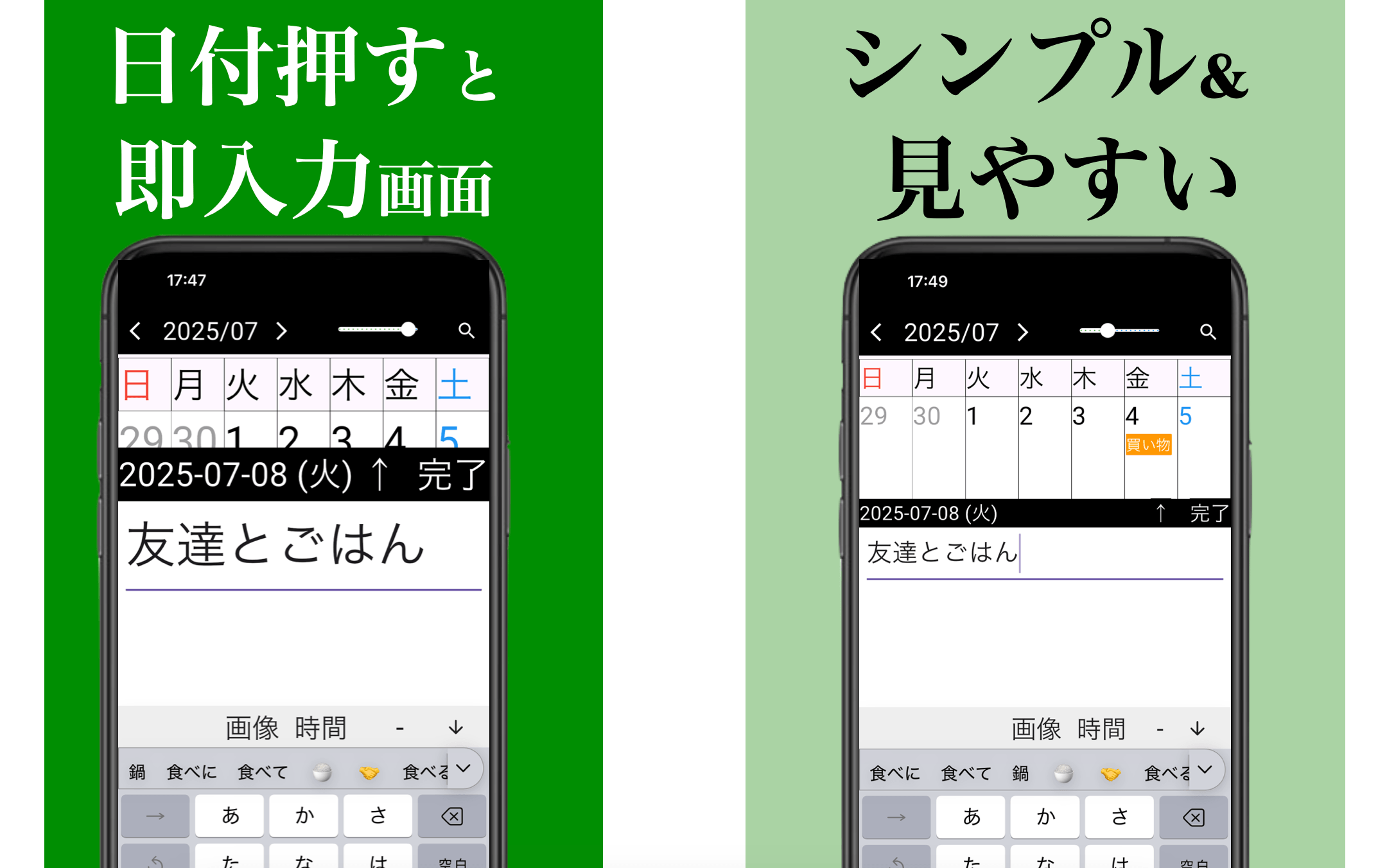 (2)日付を押すと、カレンダーを見ながらも入力欄が出るので、普通の紙カレンダーと同じような感覚でお使いいただけます。