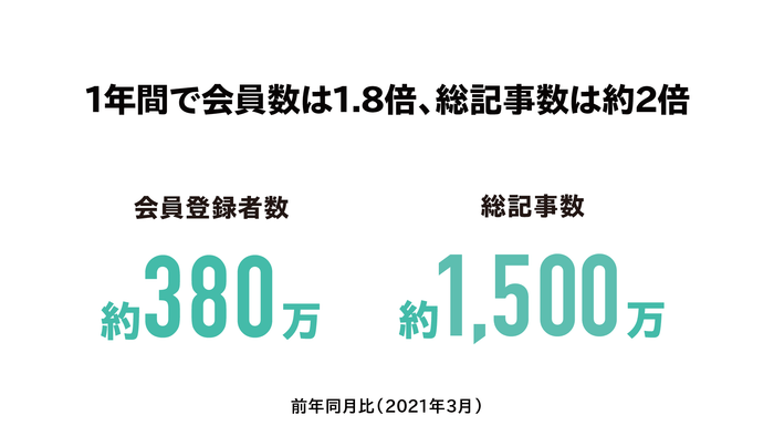 ※1:会員数、総記事数:2020年3月時点と2021年3月時点の累計比較