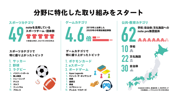 noteの会員数は前年同月比1.8倍の380万人、記事数は前年同月比2倍の1,500万件と、この一年でおおきく成長しました。コロナ禍での「伝えたい」「つながりたい」という気持ちから、人々にとってオンラインでの発信の重要性が高まっていることがうかがえます(※1)。