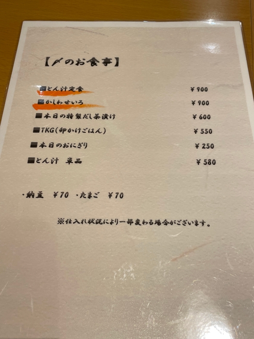 まずは大将の賄いからメニュー化された二大汁看板のとん汁とかしわ汁をお楽しみください。