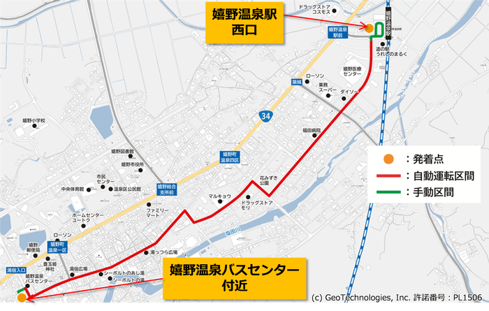 ■走行ルート : 嬉野温泉駅西口と嬉野温泉バスセンターの間を往復するルート