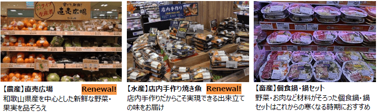 今回の改装では、商品ケースを変更・増設し、毎日の食卓を彩る生鮮食品や忙しい時に助かる手作りお惣菜、便利な冷凍食品の品ぞろえを拡充することで、在宅時間の長期化で高まっている内食・中食ニーズに対応いたします。