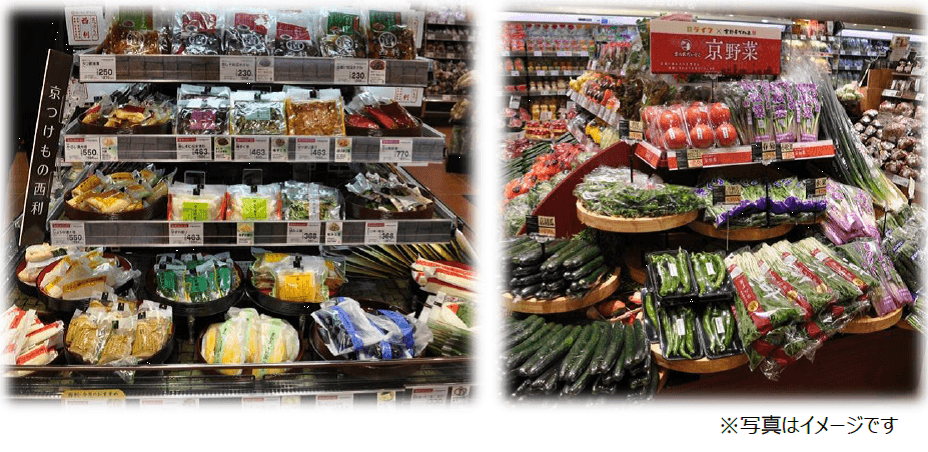 京野菜や漬物、京都地区店舗で人気の商品など、地域ニーズに対応した京都自慢のおいしさを取りそろえます。