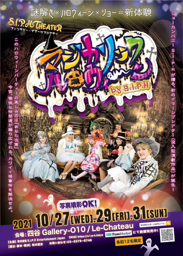 株式会社S.I.P.H Entertainment Japan(本社:東京都渋谷区、代表取締役:松本 匡史)は、2021年10月27日より2021年10月31日まで、ショーカンパニーS.I.P.H Entertainment Japanが発足したシアターブランド『S.I.P.H THEATER』が、業界初の試みとなる新たな観劇の没入公演『マジカリック・ハロウィーン by S.I.P.H - ファンタジー・イマーシブシアター』を開催します。
