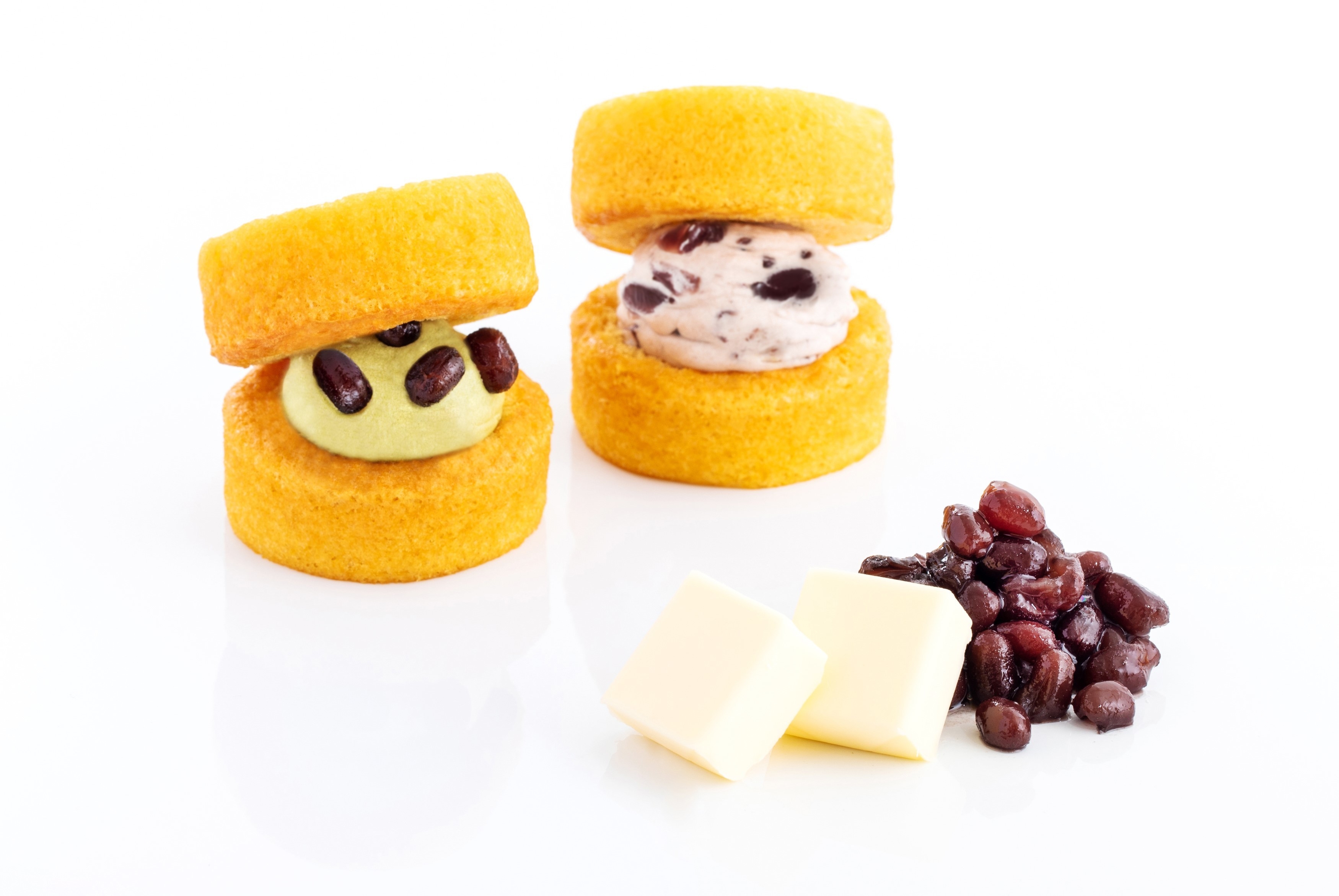 あんこはバタークリームや生地との相性を選び抜き、柔らかく、甘さ控えめなあんこを使用しました。小倉味は、北海道産小豆のつぶ餡を、抹茶味は、宇治抹茶餡と大納言小豆を使用し、深い味わいと調和のとれた口あたりに仕上げました。