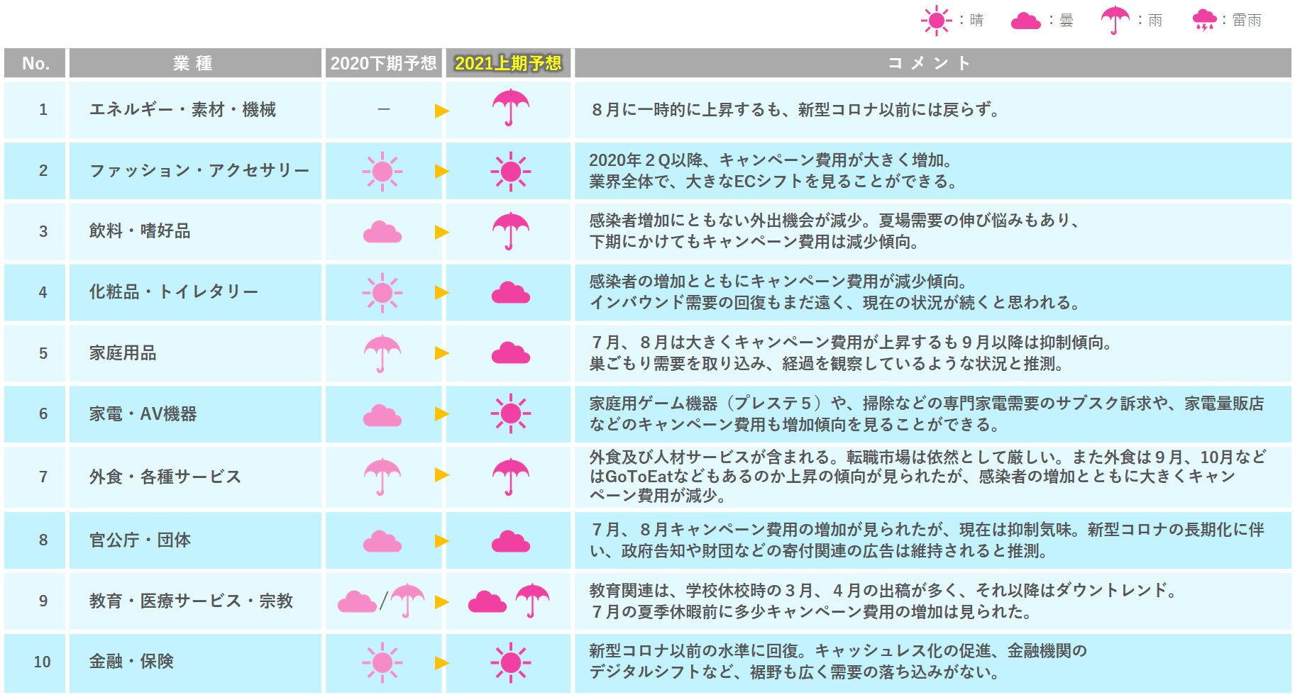 1. 2020年下期の市況は上期比較で改善傾向にあり、2020年下期インターネット広告予算は36.1%が増加したと回答。中でも9.8%は大きく増加したと回答。