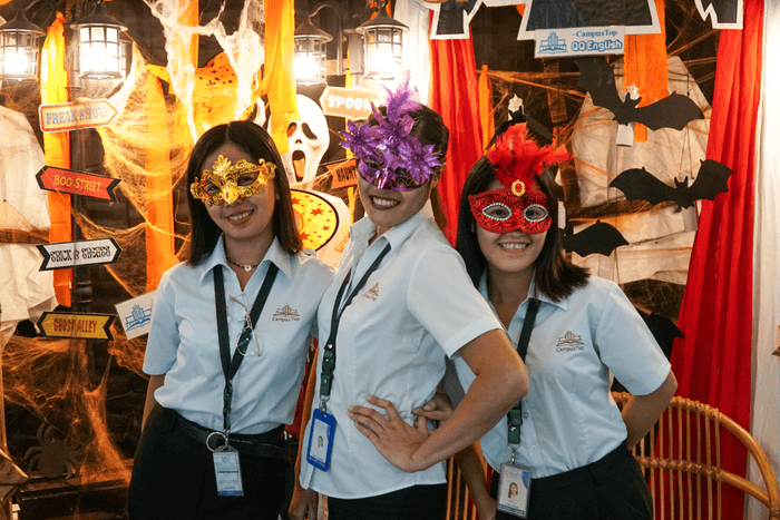 2日間にわたり、その日のテーマに合わせて仮装した教師がレッスンを担当。