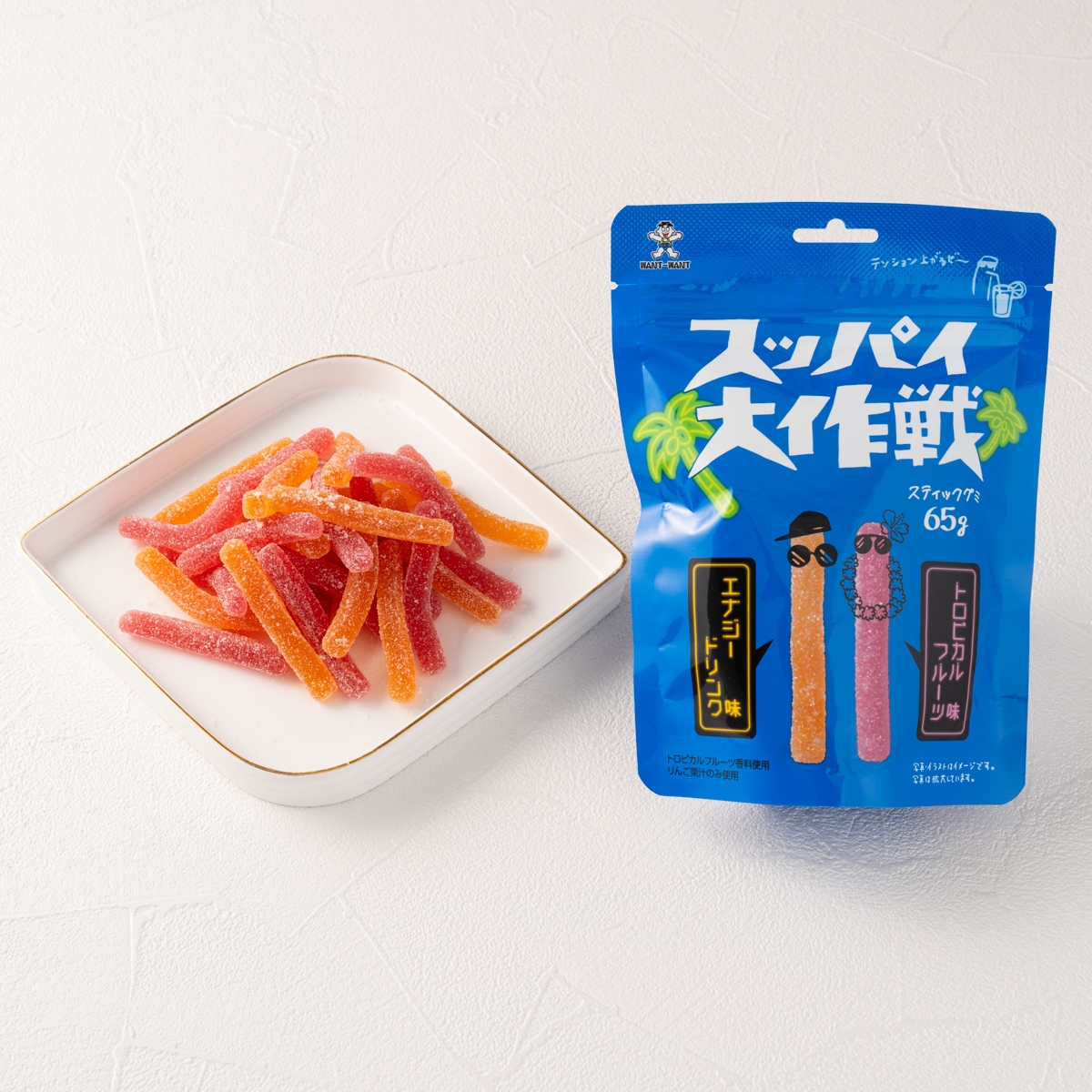 「スッパイ大作戦」は、ハードな食感と甘酸っぱいパウダーが特徴のスティック状グミで、やみつきになる食感と味わいがZ世代にも人気。2019年秋に「コーラ&レモン」の発売以降、10種類以上のフレーバーを展開し、全国のDAISOやスーパーなどで販売中の人気シリーズです。