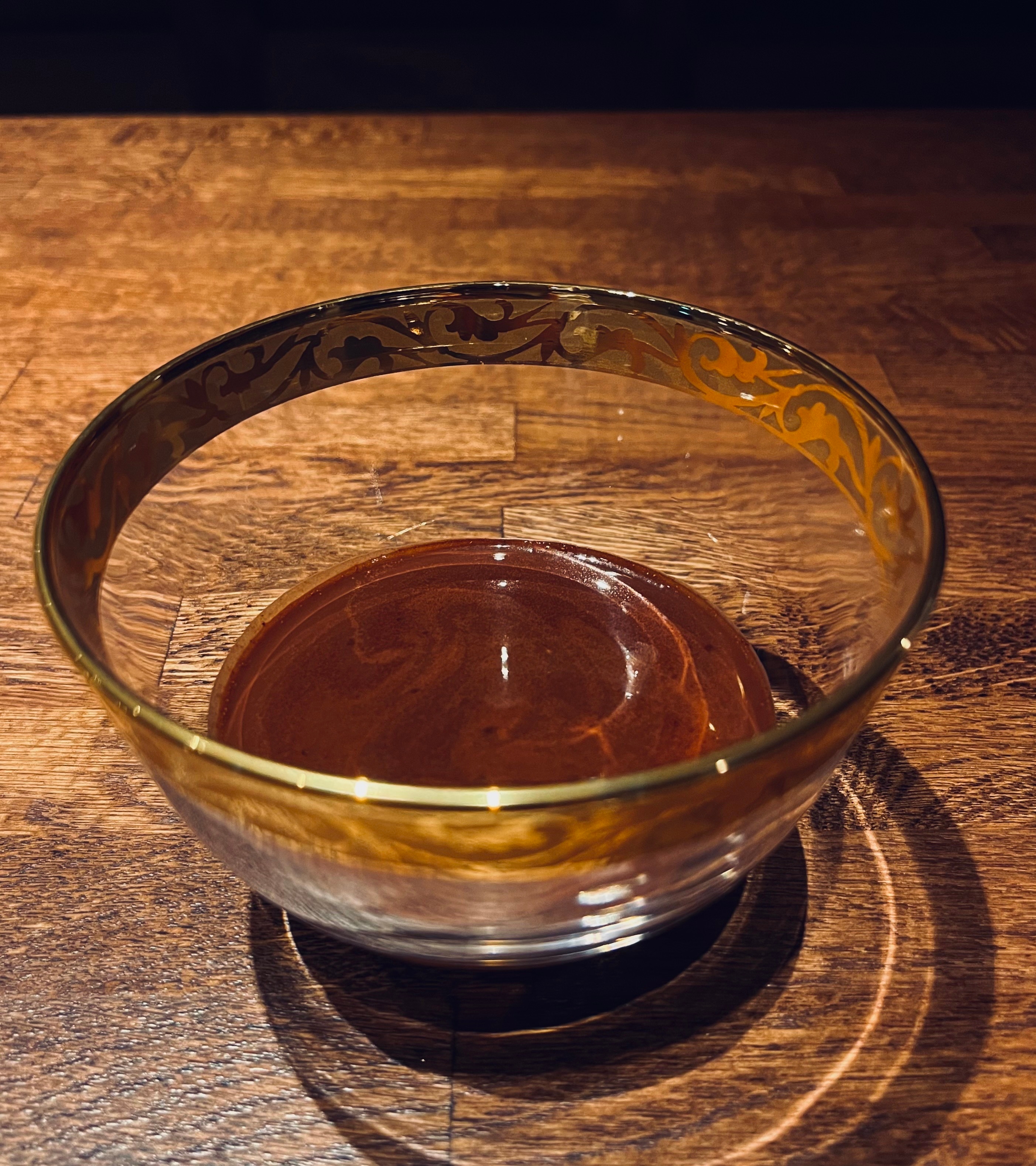 さらに、このデセールには、お客様の目の前で茶筅を使って点てる「ショコラショー」(ホットチョコレート)の特別な演出を添えています。茶筅で点てることにより、より滑らかでクリーミーな口当たりとなり、チョコレートの香りが一層引き立ちます。飲むたびに心まで温まる、caycaならではの体験をご堪能ください。