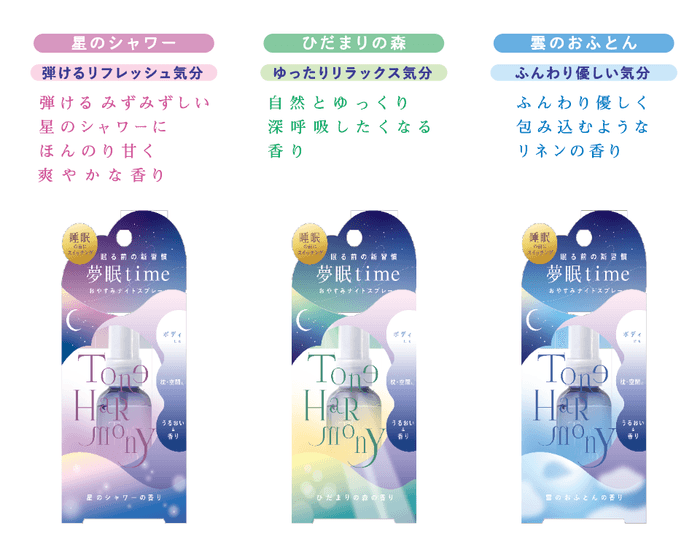 そこで、ビューティーワールドは穏やかな睡眠をサポートする「トーンハーモニー」というブランドを立ち上げました。薬に頼るのではなく、自然とリラックスして眠れる環境づくりのお手伝いになればと思っています。