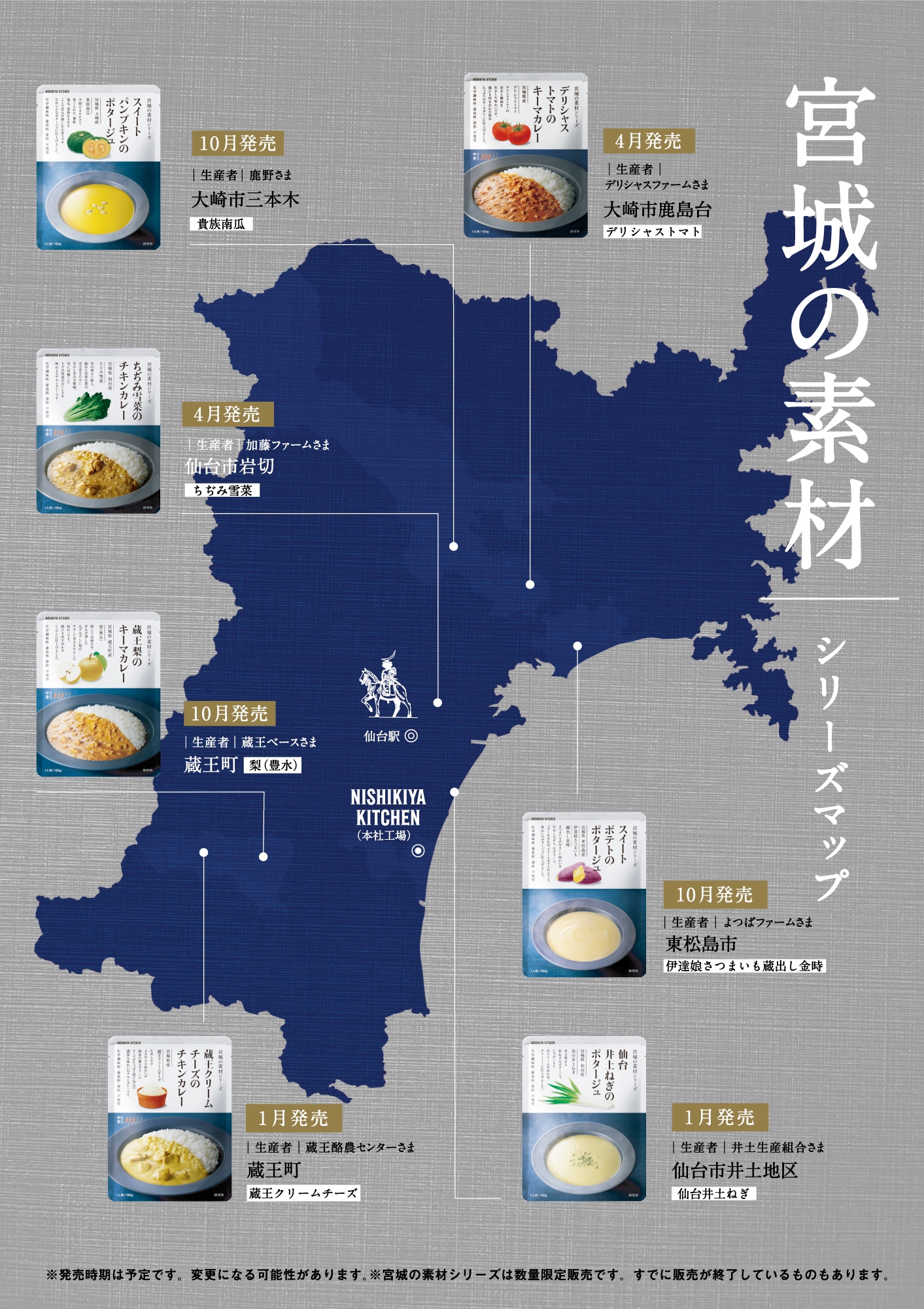 宮城の素材シリーズとは、NISHIKIYA KITCHENのある地元・宮城県の素材を使用して、素材のおいしさや魅力を最大限に引き出した商品シリーズです。