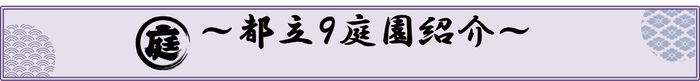(浜離宮恩賜庭園・旧芝離宮恩賜庭園・小石川後楽園・六義園・旧岩崎邸庭園・向島百花園・清澄庭園・旧古河庭園・殿ヶ谷戸庭園)