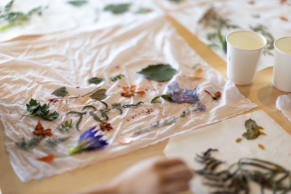 2泊以上ご滞在の方には、『ニュアラ染め』や、植物を直接置いて柄を作る『バンドルダイ』のワークショップも開催可能です。(料金3,850円(税込)~)