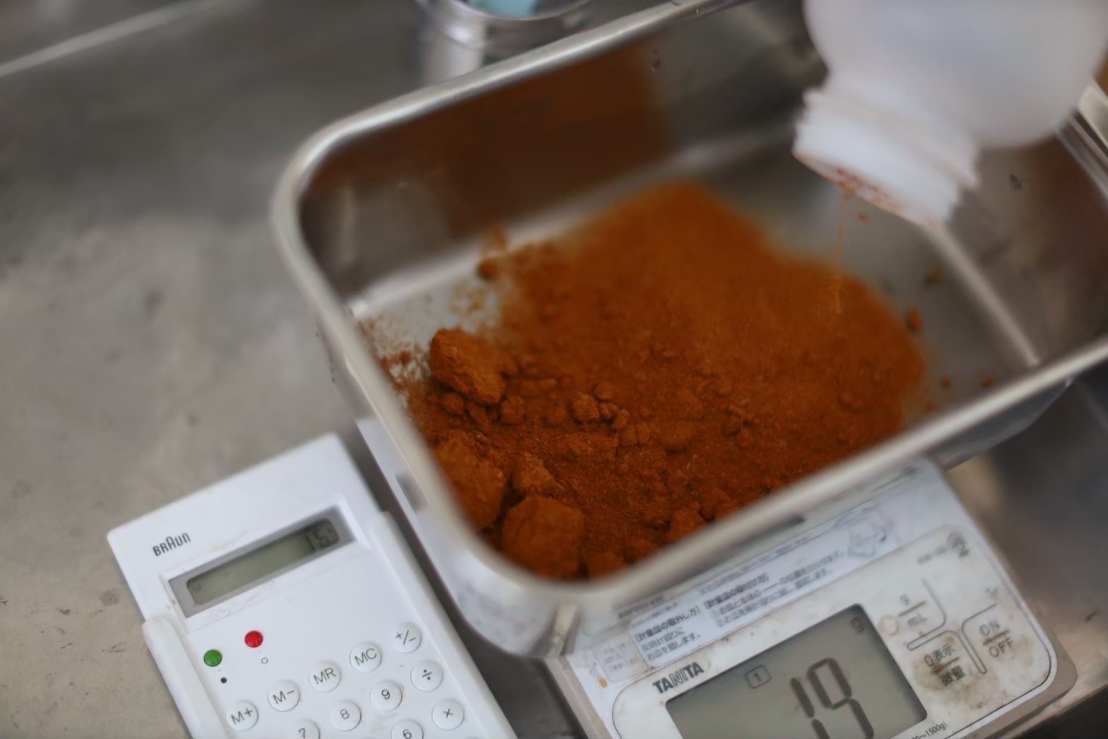植物を微粉砕した粉やミネラルなど、自然界にあるものを使って染色するニュアラ染めは、排水が環境に負担をかけない伝統技法です。煮込んだりする工程もなく、短時間で染め上げるため、生地の風合いを損ねる心配もありません。均一ではない奥行きと、鮮やかな自然の色を楽しめます。