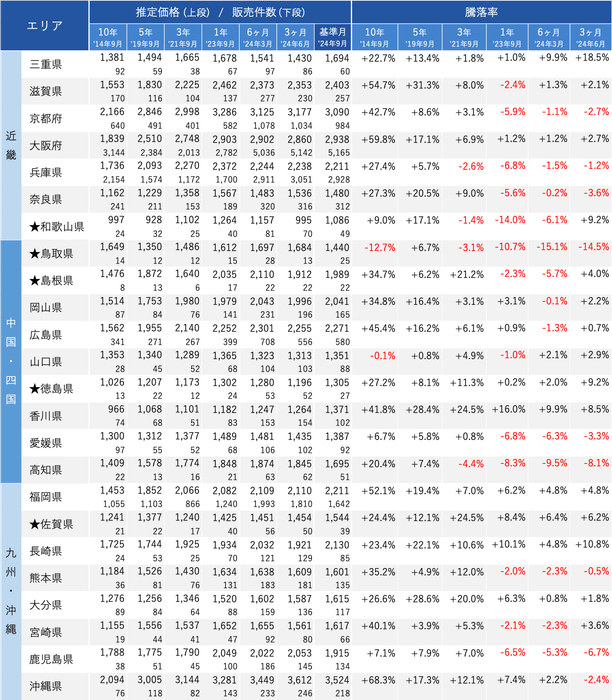 ・騰落率:1位「東京都」+17.6%、2位「香川県」+10.5%