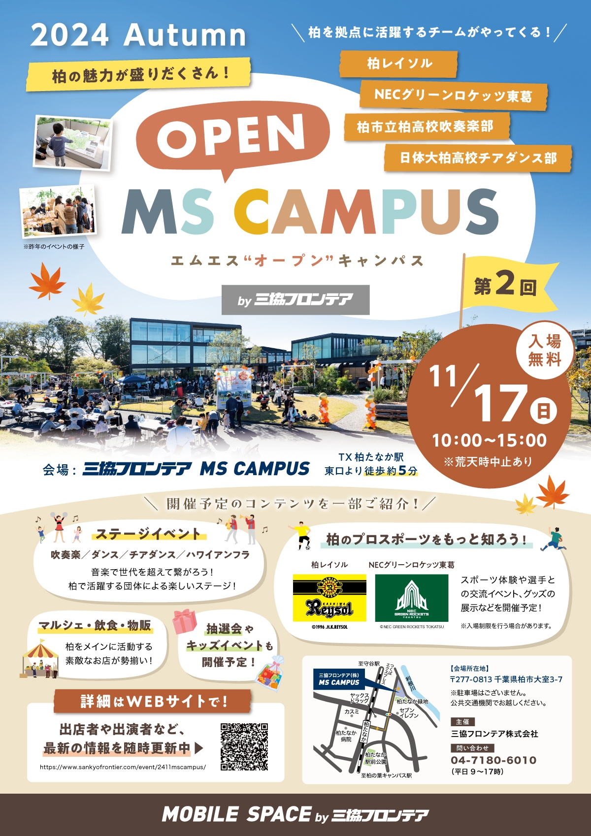 プロスポーツチームとの交流やダンスステージ、フードなど、 柏市の魅力を集めた「第2回MS OPEN CAMPUS」が 11月17日(日)開催決定!