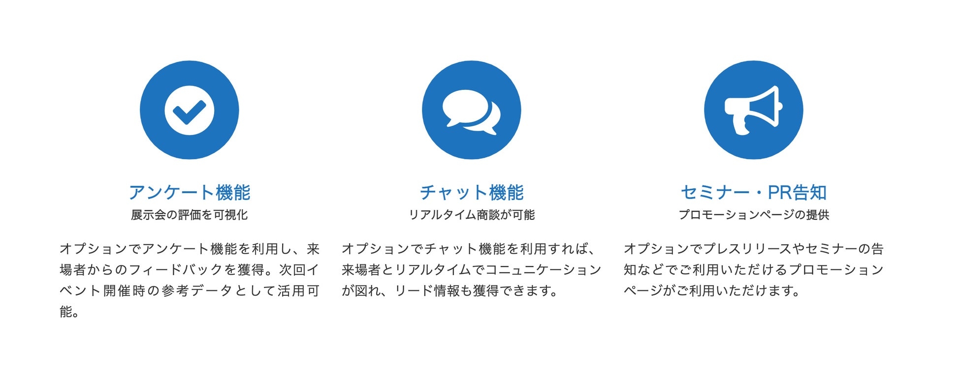 ※コミュニケーションツールのご利用や来場者リストの提供など一部有料プランのお申し込みが必要です。