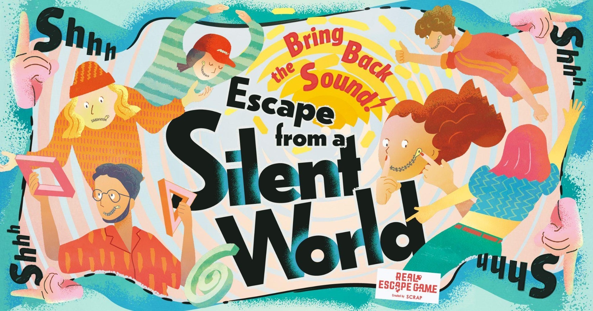 本イベントは、突然世界から音が消えた、というストーリー設定。ゲーム中は、会話を含むすべての“音を出す行為”が禁止されています。しかし、謎を解くためには同じチームのメンバーが持つ情報を共有し合うことが不可欠。言葉の代わりに、ジェスチャーや表情、目線などを駆使して、仲間と意思を伝え合いながら、音のある世界を取り戻すことを目指します。