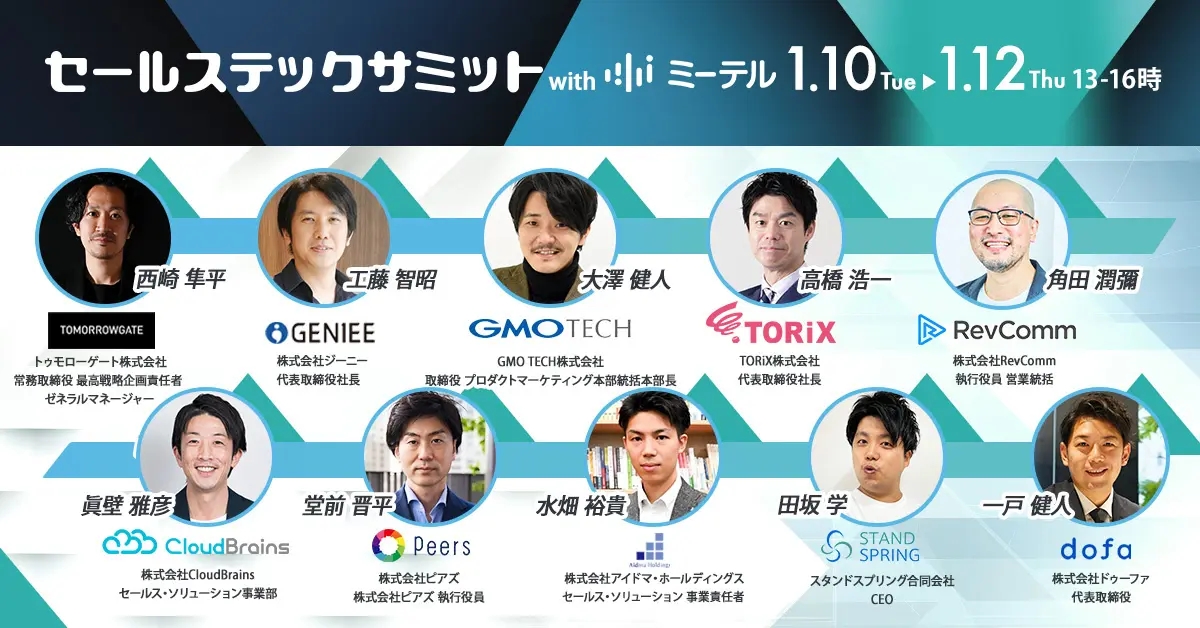 日報共有サービス「日報アプリgamba!(ガンバ)」を提供する株式会社gamba(本社:東京都千代田区、代表:森田昌宏以下 「gamba」)は、セールステックに特化した『セールステックサミット with ミーテル』をオンラインにて1月10日(火)〜1月12日(木)に参加します。